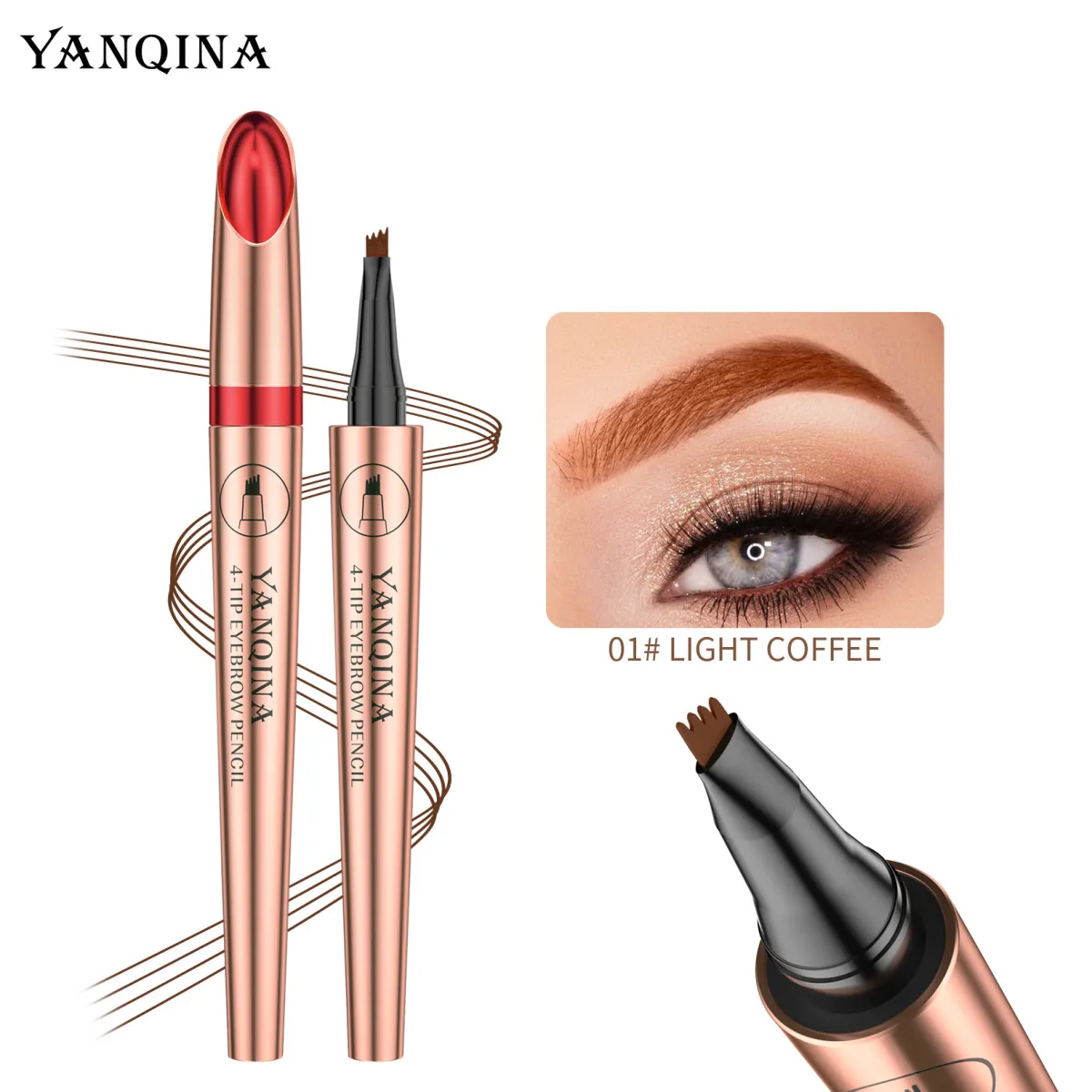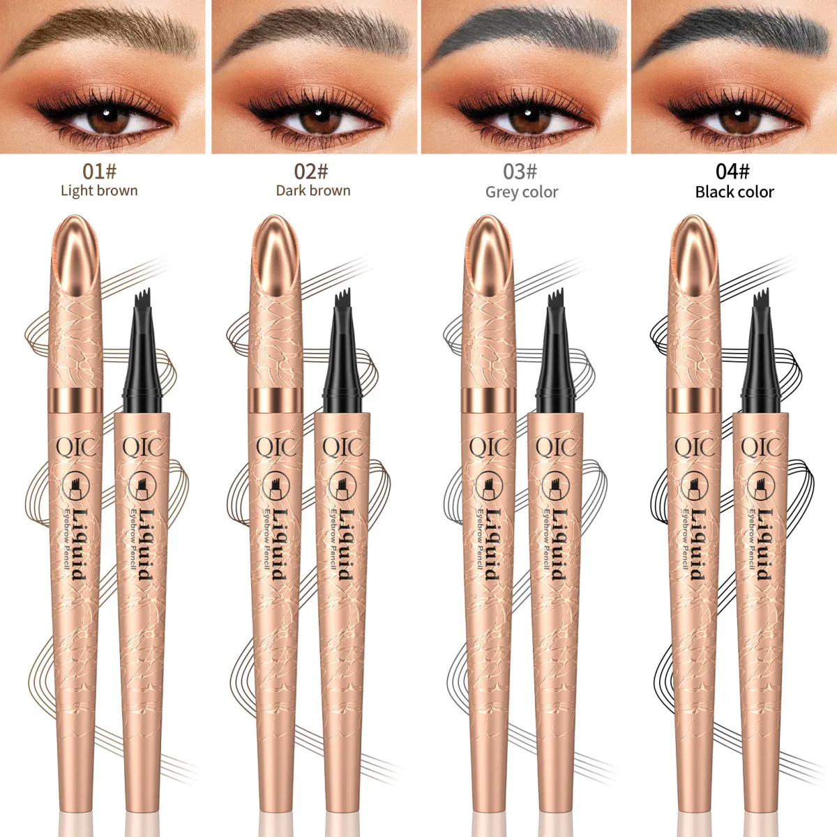 Wholesale Qic Gold Tube Wild Eyebrow lápiz líquido para cejas de cuatro garras impermeable no floreciente cuatro agua dividida lápiz de cejas maquillaje