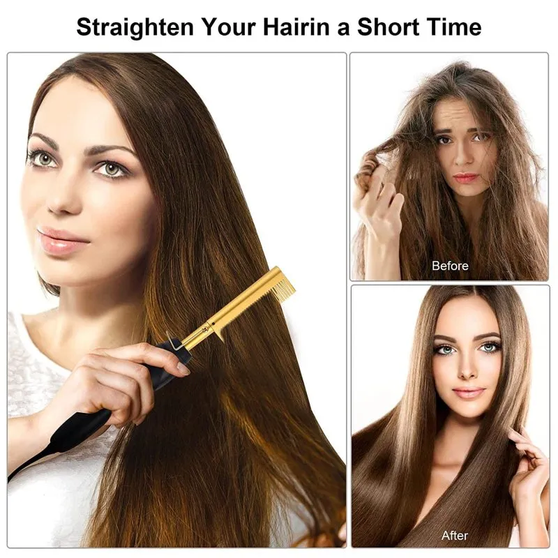 Wholesale Peigne électrique à double usage en cuivre pour lisser les cheveux, prise européenne, britannique, américaine, australienne, humide et sec, lisseur pour cheveux, permanente, bouclage