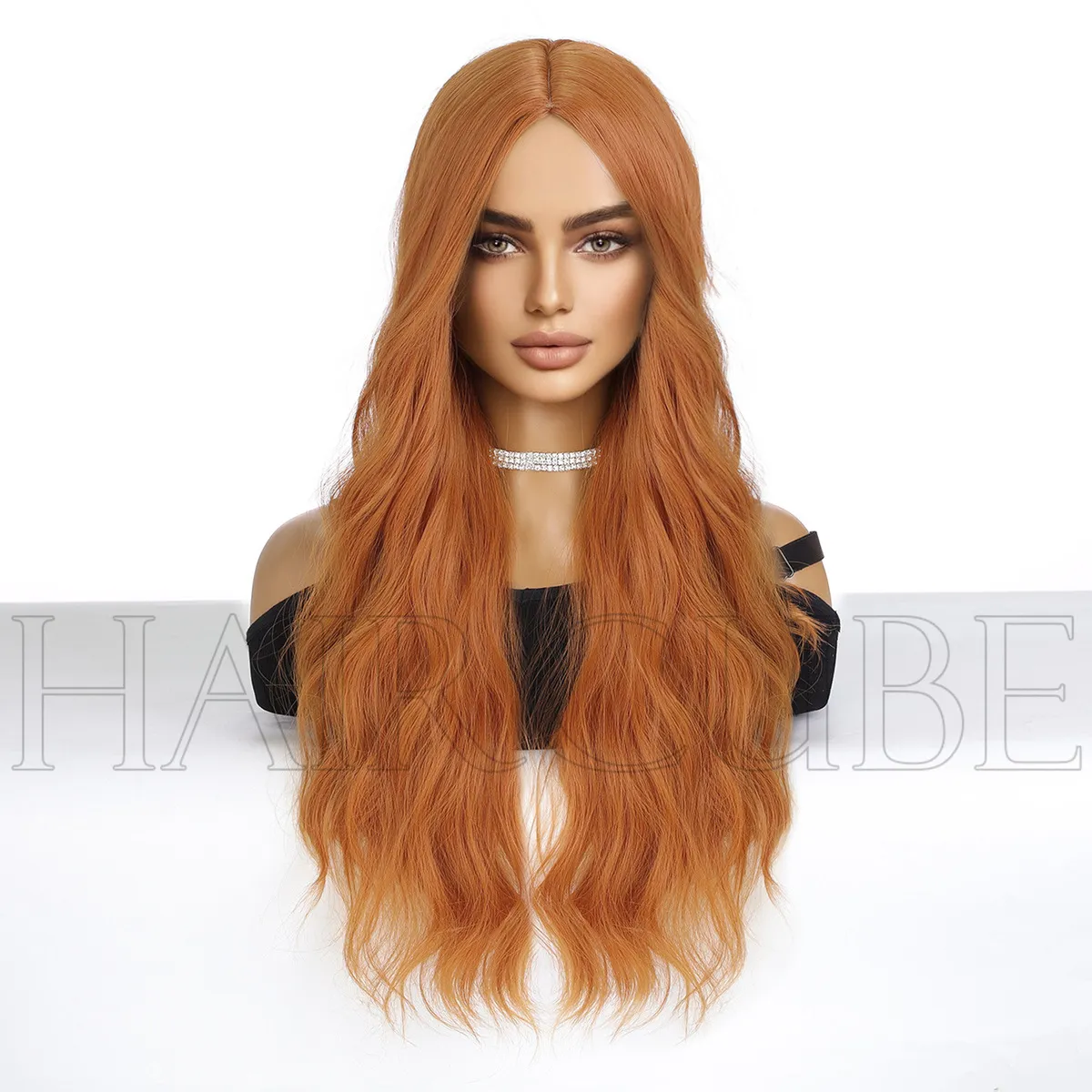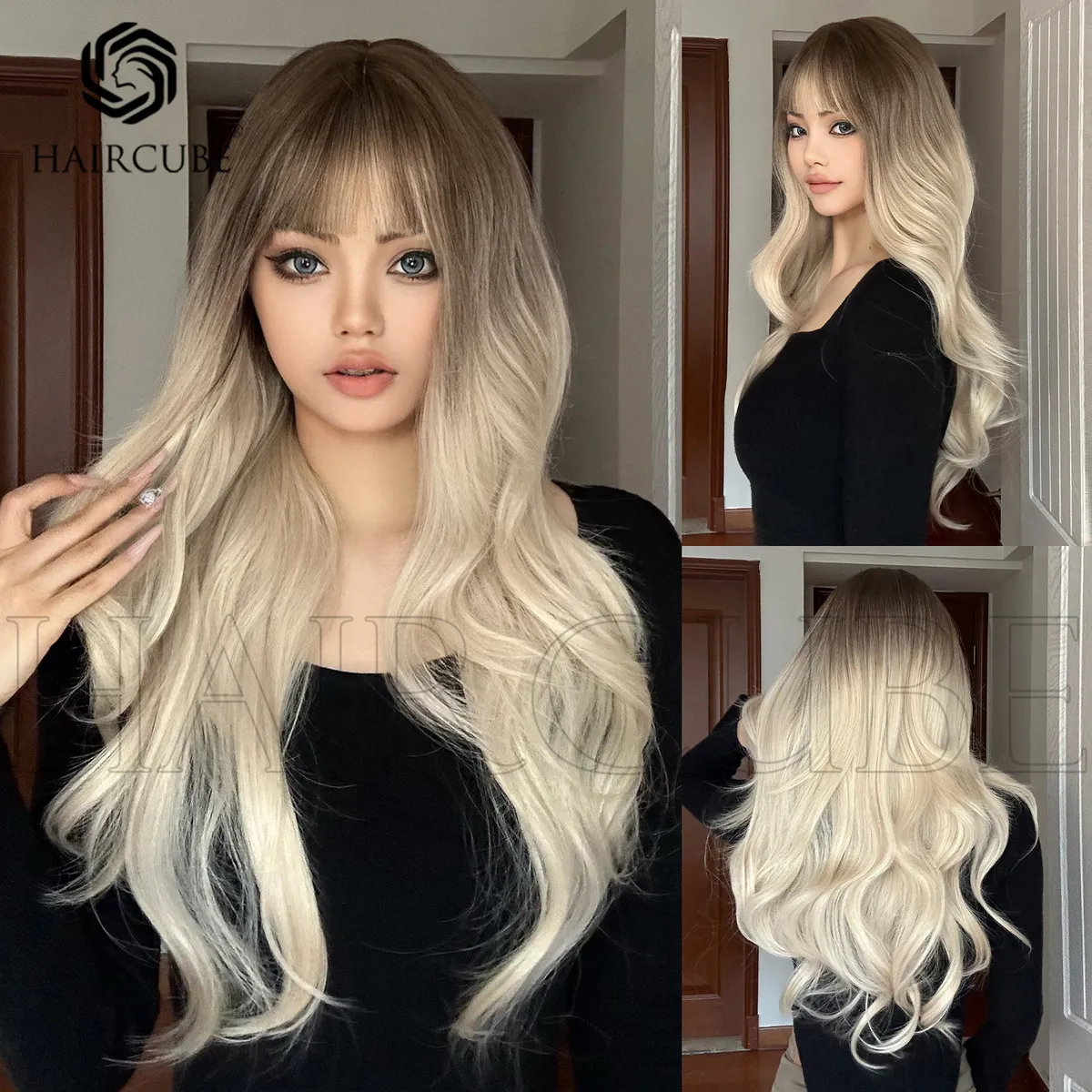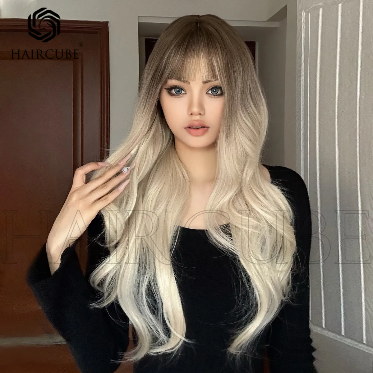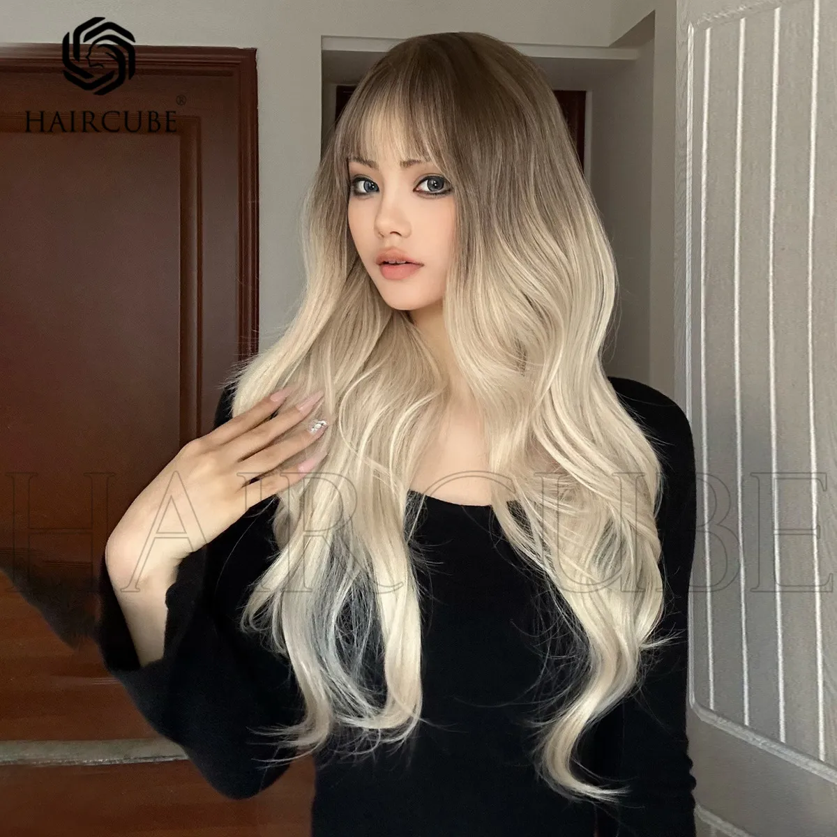 Wholesale perruque femme coiffure perruque dorée cheveux raides ondulés frange droite perruque cosplay femme