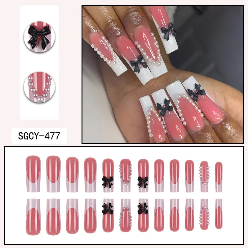 Wholesale Lot de 24 patchs pour ongles avec nœud noir nacré et bord blanc
