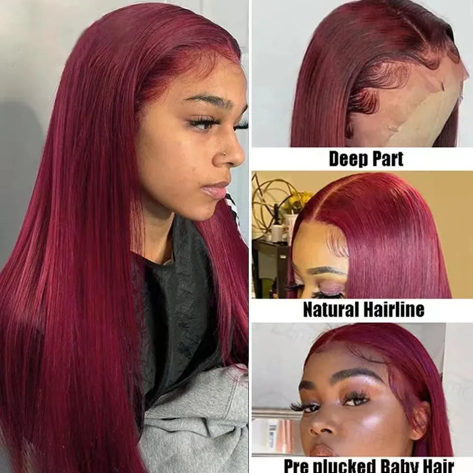 Wholesale Perruque Lace Front Wig Longue Droite Bordeaux
